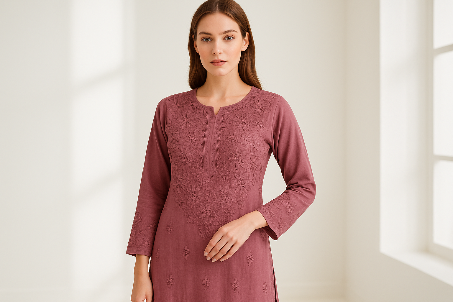 Embrace the elegance of Lucknow's rich textile heritage with this beautiful Chikan kurti - where tradition meets contemporary style.